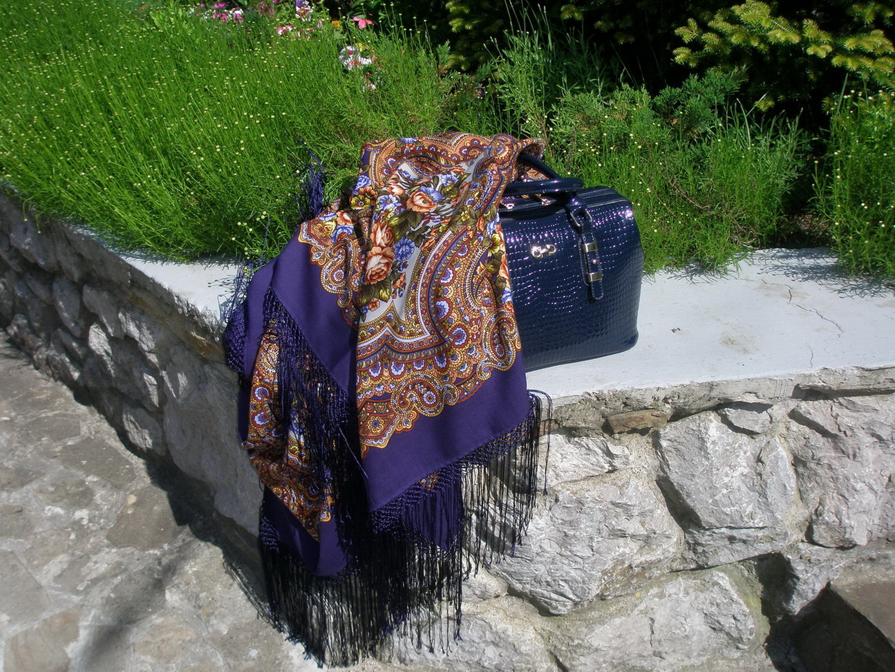 Сумочка простой удобной формы и платок с проосновками Поле цветов ( на фото чуть ярче чем на самом деле)