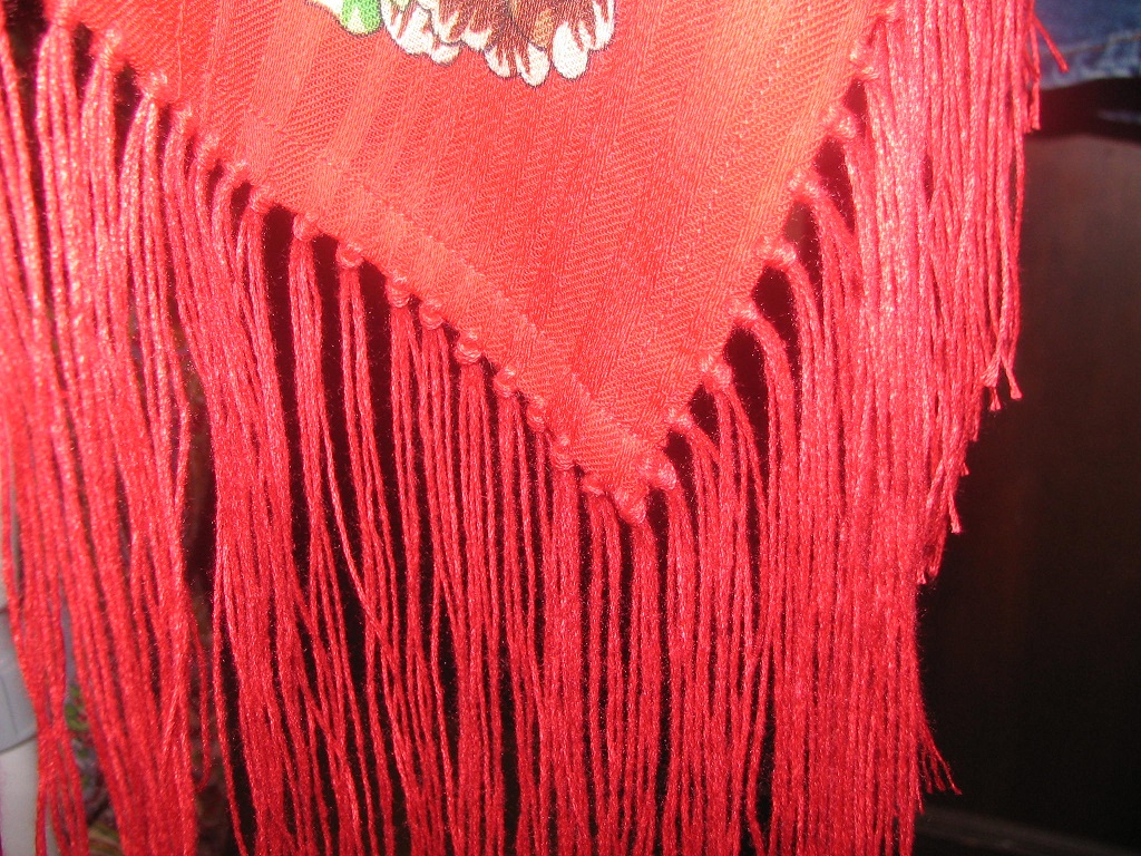 Думаю про красные. Что скажете? У меня есть Дикая роза (которая цвета синий электрик), она с красной бахромой и мне нравится.