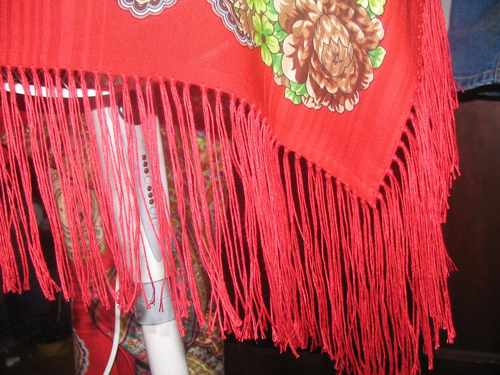 Пионы-14а, синева уходит в бирюзу (не знаю, насколько врет мой монитор - по факту мой плат позеленее чем другие на фото). Цвет, на мой взгляд, наикрасивейший, но ниток на бахрому я никогда не подберу, скорее всего.