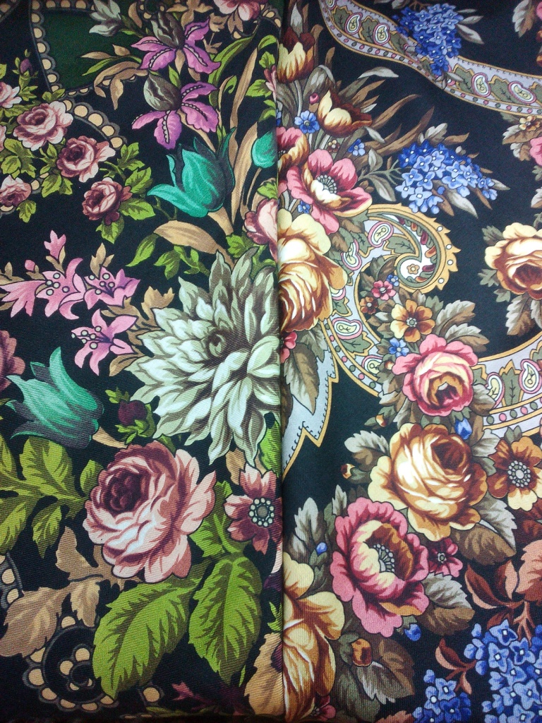 Может быть именно эта неприглаженность (индивидуальная для каждого мастера и для каждого платка) как-то сглаживала, уравновешивала (не знаю какое более точное слово подобрать) общую декоративность платка, придавая рисунку характер и индивидуальность.