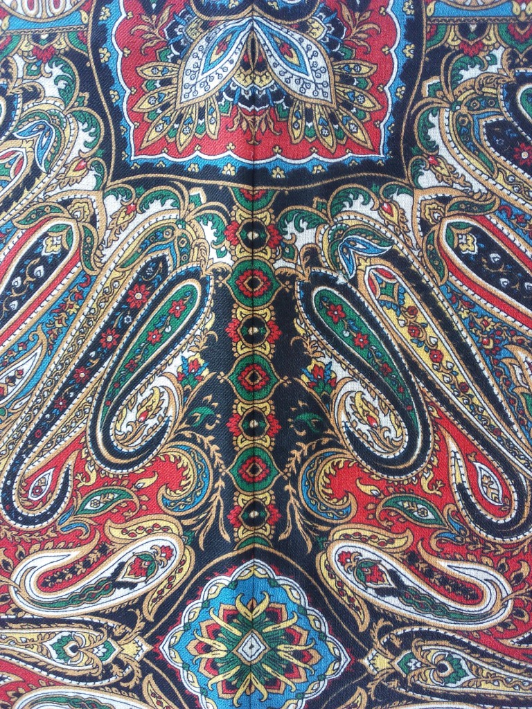Но это, если бы платки были целыми. Из лоскута получилось вот так (прошу прощения за качество фото, но палантин видно):