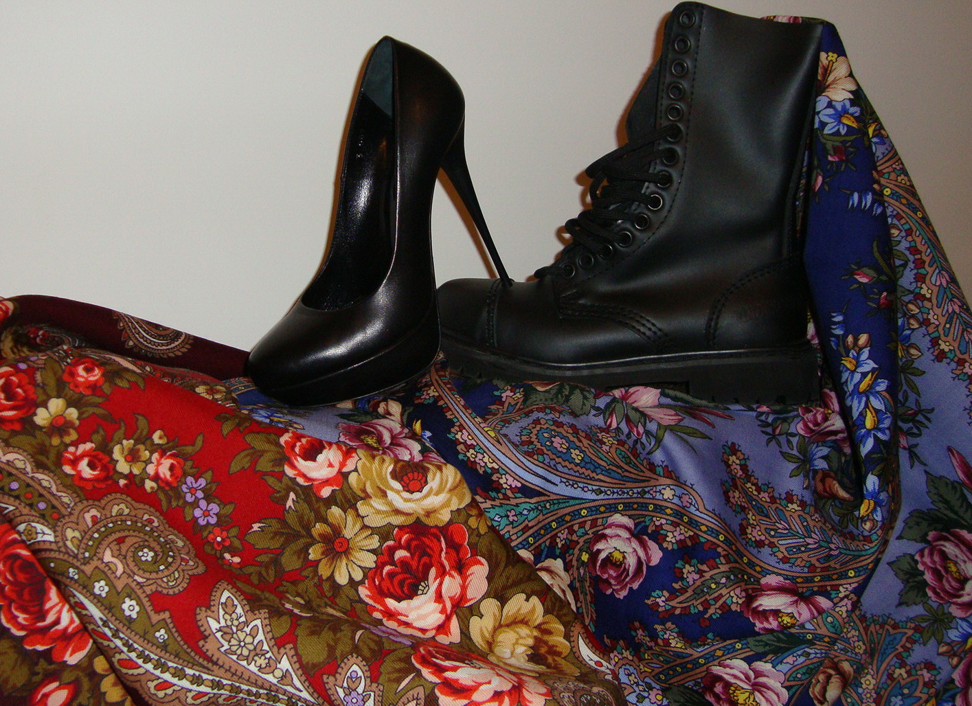 Вот как я распределила свою обувь среди шалей, здесь и мое настроение и характер! Секрет настоящей русской шали в том, что женщина всегда остается женщиной..несмотря на походные условия! (*-( :<>: