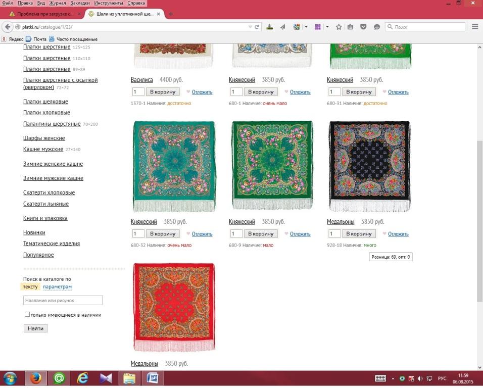 Я тоже на днях получила эту шаль. Долетела посылка на пятый день до почтового отделения. Своим экземпляром очень довольна. Ткань совсем не тонюсенькая, пластичная, драпируется хорошо, как уже здесь отмечали. Рисунок четкий, яркий. Утолщений в ткани и непрокрасов нет. Бахрома хорошо навязана. Чуть бы получше подшивка кромки, не совсем ровно подвёрнута ткань в одном из углов, но в намотке это совершенно не будет мешать.
