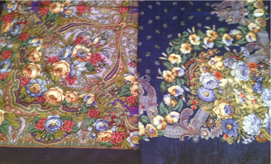 2. печать платка с бахромой отличается бОльшей контрастностью и яркостью некоторых оттенков.