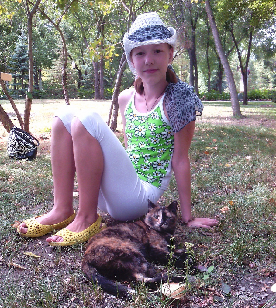 Я, т.к. ехала через весь город (соответственно - везде пробки, не смотря на выходной) на несколько мин. припоздала и немного растерялась в парке "Салют Победе". Была там "осознано и целенаправленно" впервые, так все мимо проезжала, и от обилия народа голова пошла кругом, думаю, где же искать "наших", пошла в другую сторону, но потом уже сориентировалась. И "наши" - Ирина и Юля с семьей - сразу нашлись, да еще опознавательные знаки приметные - платки! День был жаркий, за 30 градусов, я приехала в платочке крепдешиновом Сиртаки 18, доча Настя - на шляпу привязала шарфик креп-жоржетовый Кошачий глаз 2.
