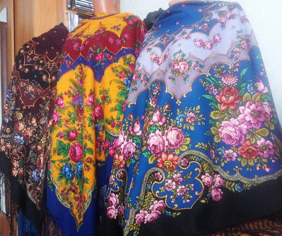 Я бы сравнила эти чудесные шали с временами года: коричневая-очень, синяя -зима, яркая туркменка-лето) вот только нет весны