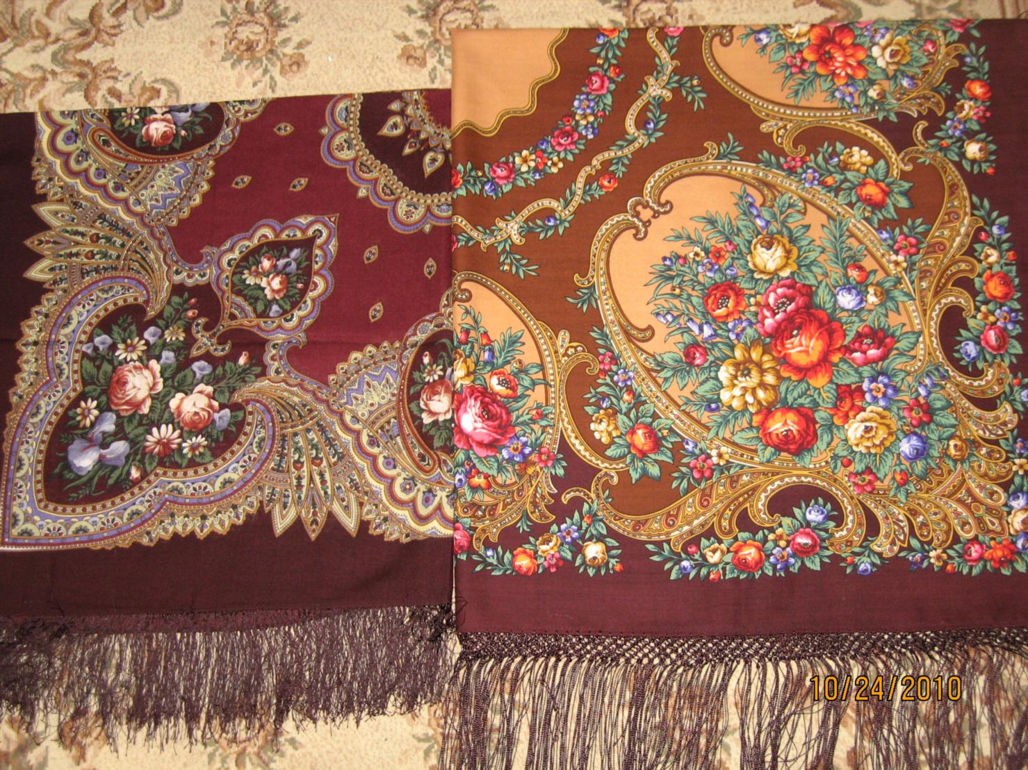 Напоследок не могу не сравнить два платка с одним номером колорита, но совершенно разных.