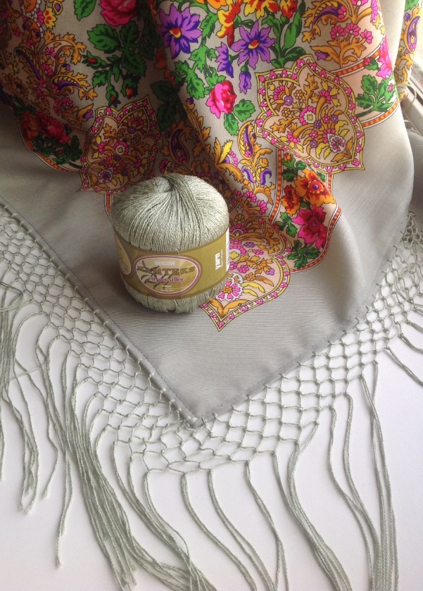 Бахрома великолепна , и цвет ниток хорош, а вот кайма на ее фоне ушла в какой-то зеленоватый цвет...
