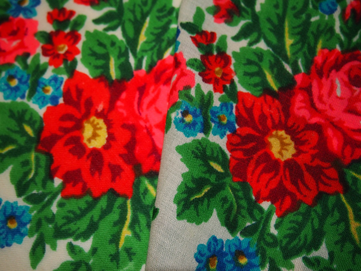 Что касается техники печати Вашей шали, то у меня нет никакого сомнения, что шаль напечатана шаблонами. Думаю, шаль Ваша годов шестидесятых, когда фотофильмпечать внедрялась в производство.
