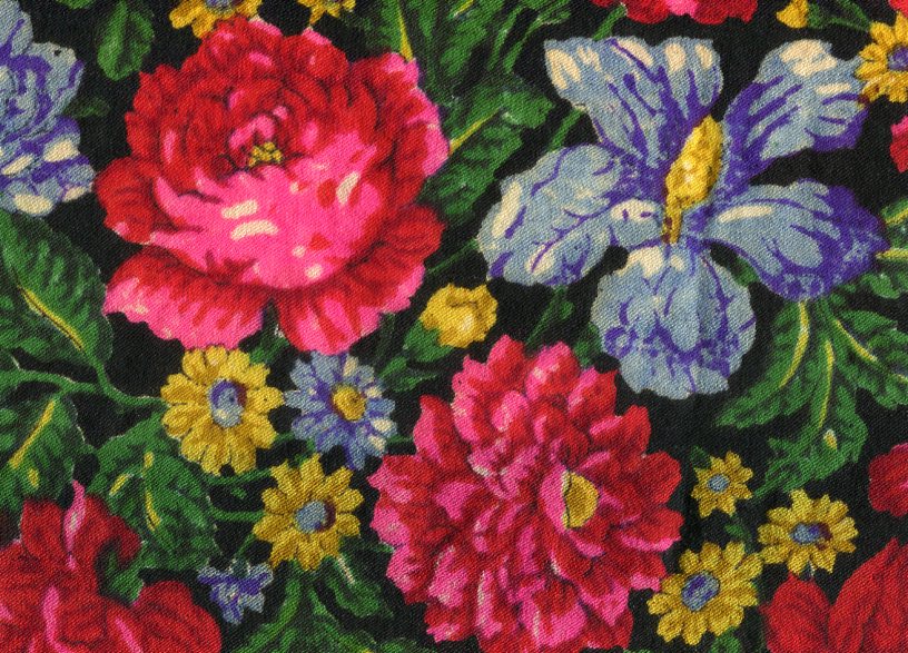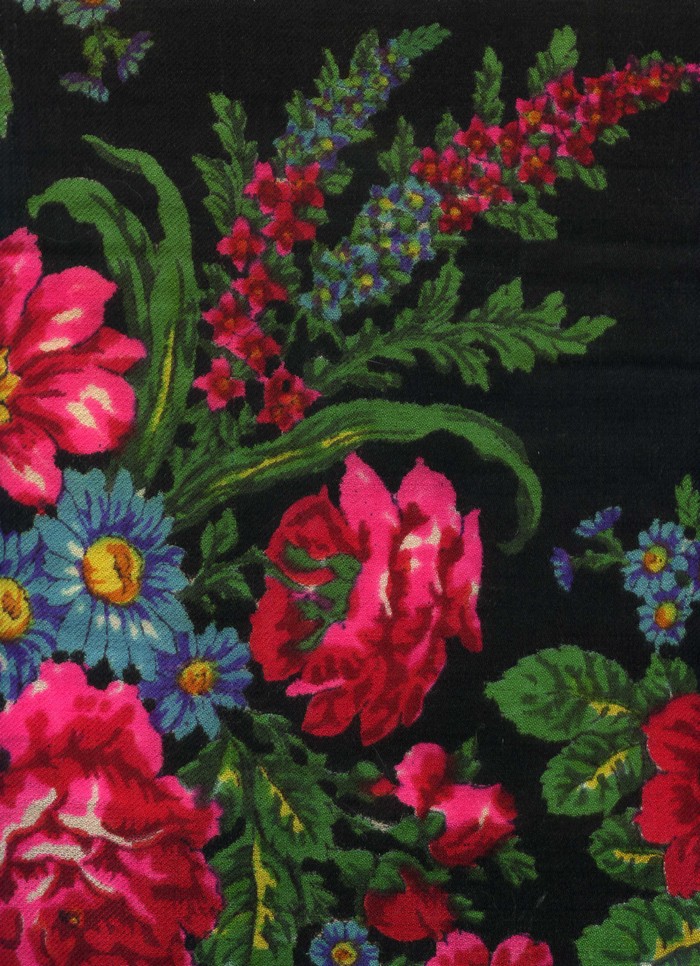 Для чёрной шали сканов изнанки не делали, так как отличается лицо от изнанки более ярким цветом. Сравнивали только лицевую сторону ручной набойки.