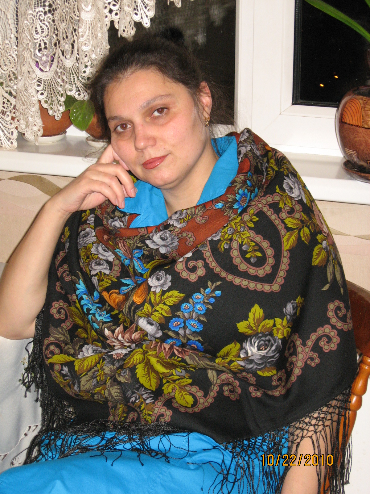 Мне нравится даже как шаль улеглась на голове.