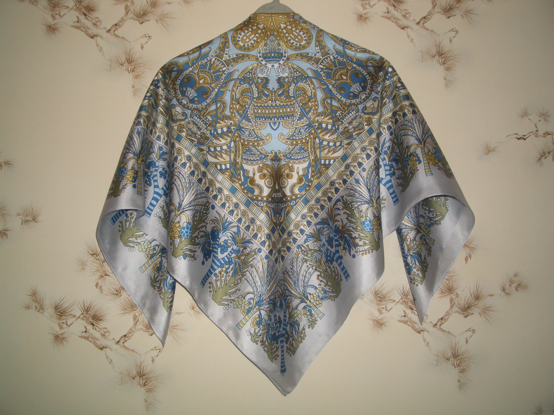Это тот самый платок с распродажи, который появился и моментально исчез. Дело было в период сбоя в приёме заказов. Я заказала его трижды