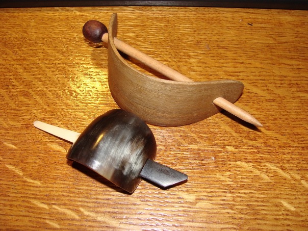 У меня много колечек из самоцветов (агат, хризопраз, сердолик), но их я использую в основном с шёлком. А есть ещё и такие заколки. Та, которая поменьше, из рога - для шёлка, а большая из грецкого ореха - специально куплена для уплотнёнки.