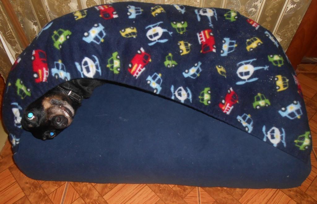 Я так поняла, что своей постелью пёс доволен. Уже два дня мы его практически не видим. Раньше возле стола ошивался, когда мы ели и пр., а тут, нет собаки.