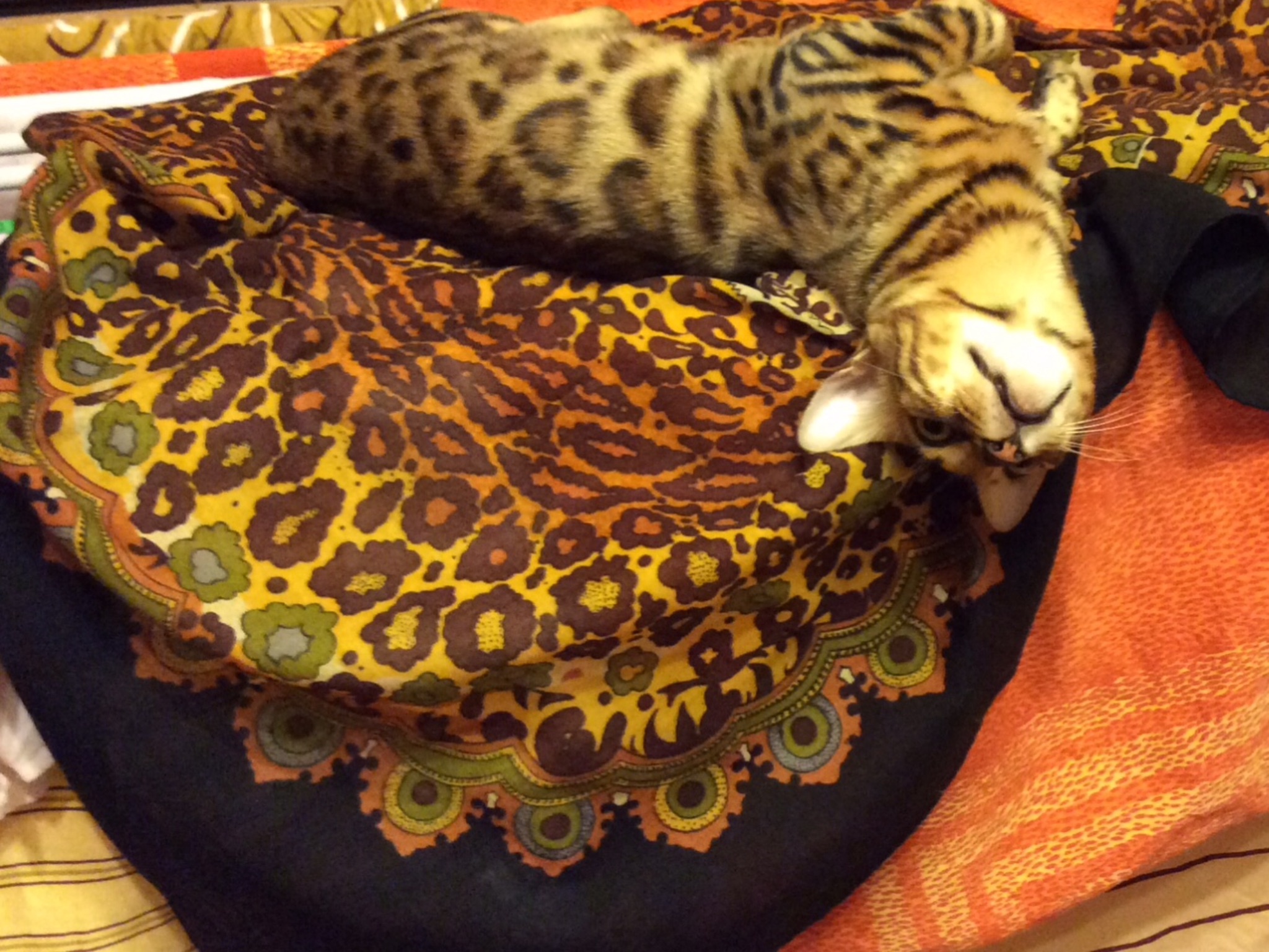 Котька опять напросился на фотосессию. Захожу, а он на сушилке для белья лежит. И конечно, на лоскуте платка! Да на каком!