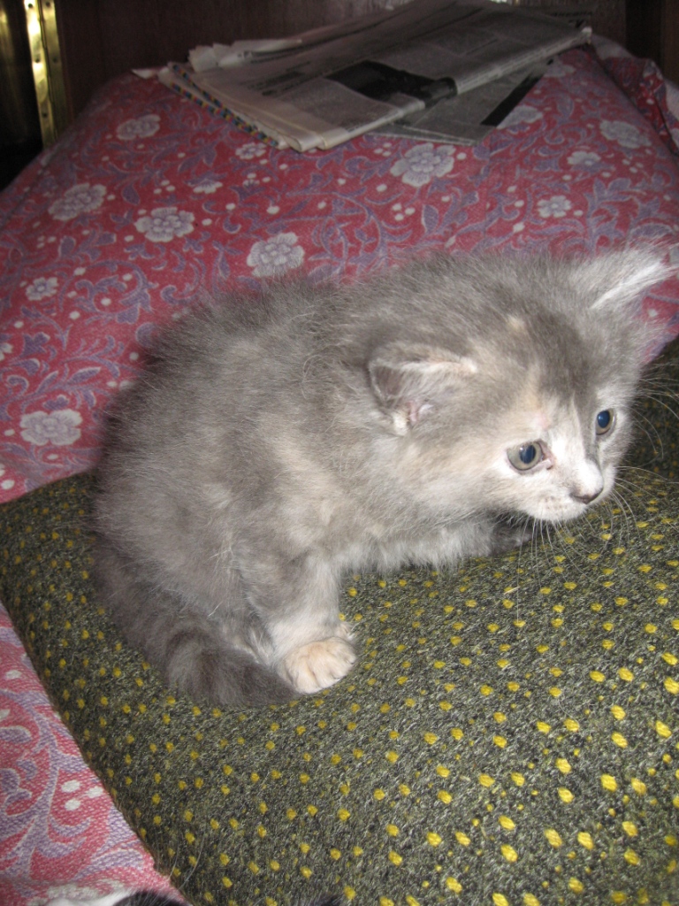 А шерстка у нее была, как пух у цыпленка. Когда мне ее привезли, я только взяла ее на руки, такую мягкую, хрупкую, сказала "Ой!" и стала ее целовать. А Персик заплакала.