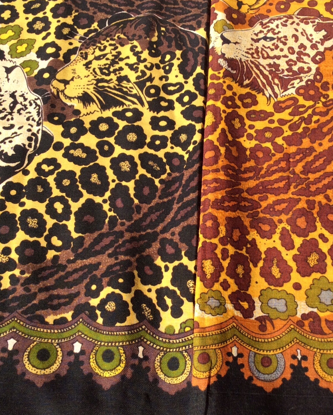 Шерстяной платок гораздо темнее, нет этого блеска, зато цвета более глубокие.