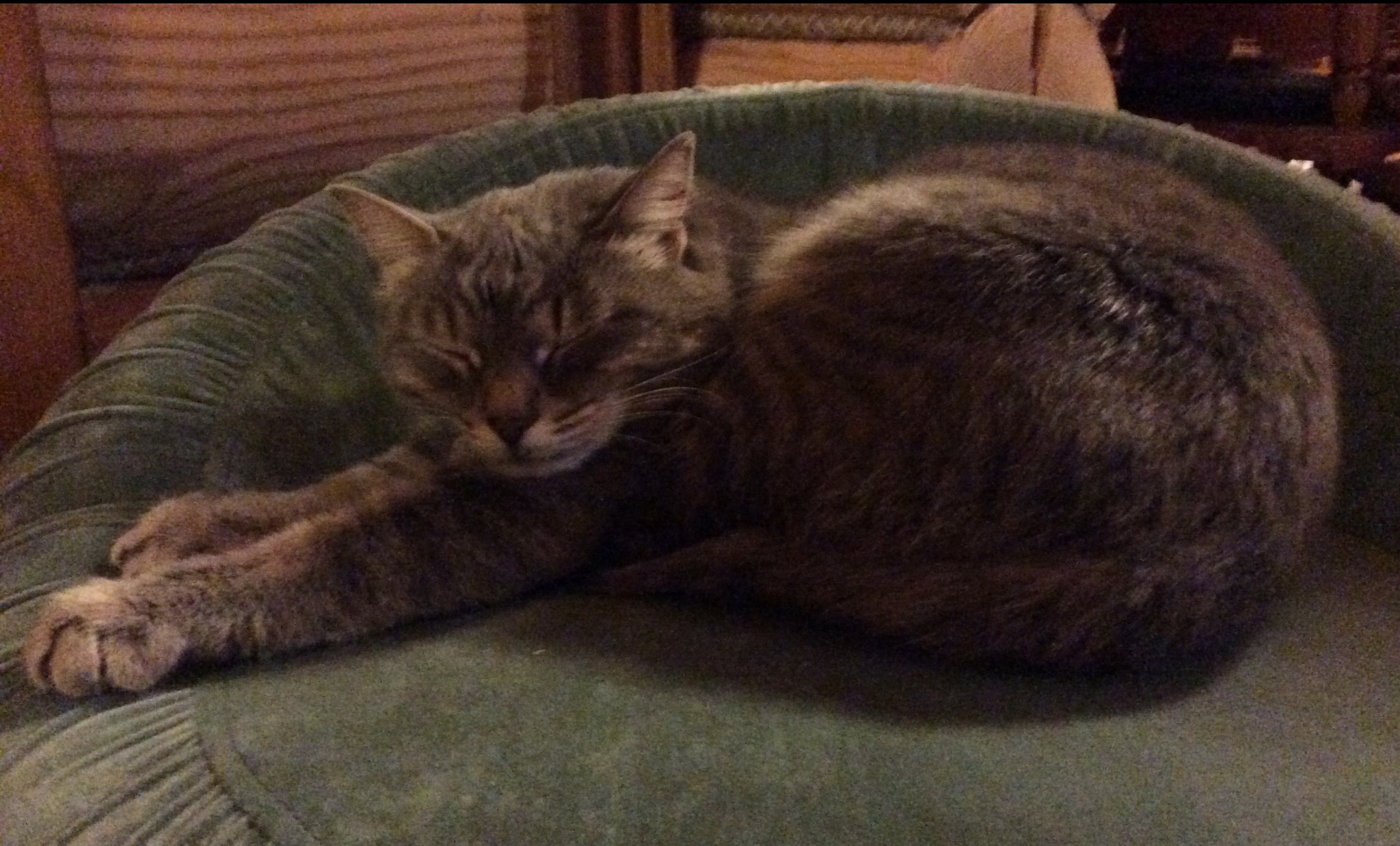 Своенравная, местами вредная, чужих не любит. На руки её просто так не возьмёшь. Только к папе или маме на колени сама прыгает.