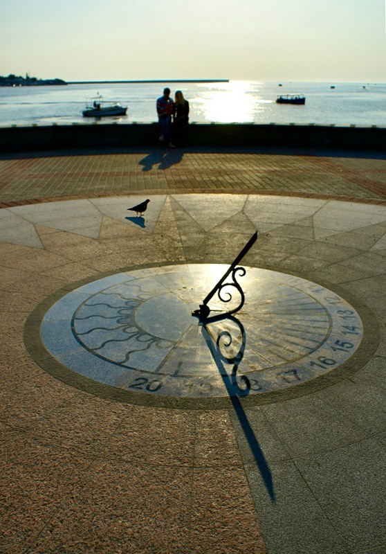 На набережной Севастопольской бухты не так давно поставили солнечные часы. Красиво-о-о-о! Сюда приезжают женихи и невесты в день свадьбы.