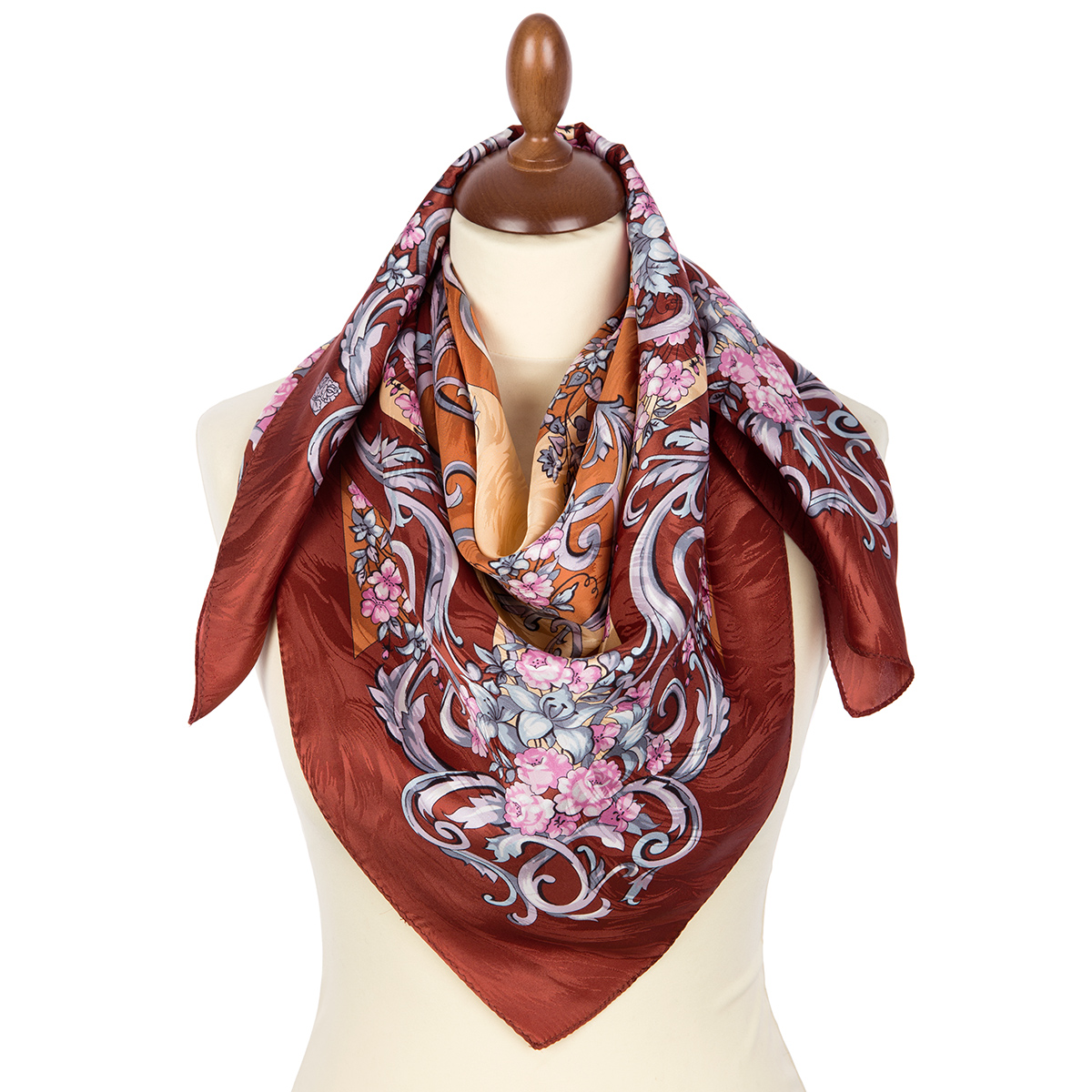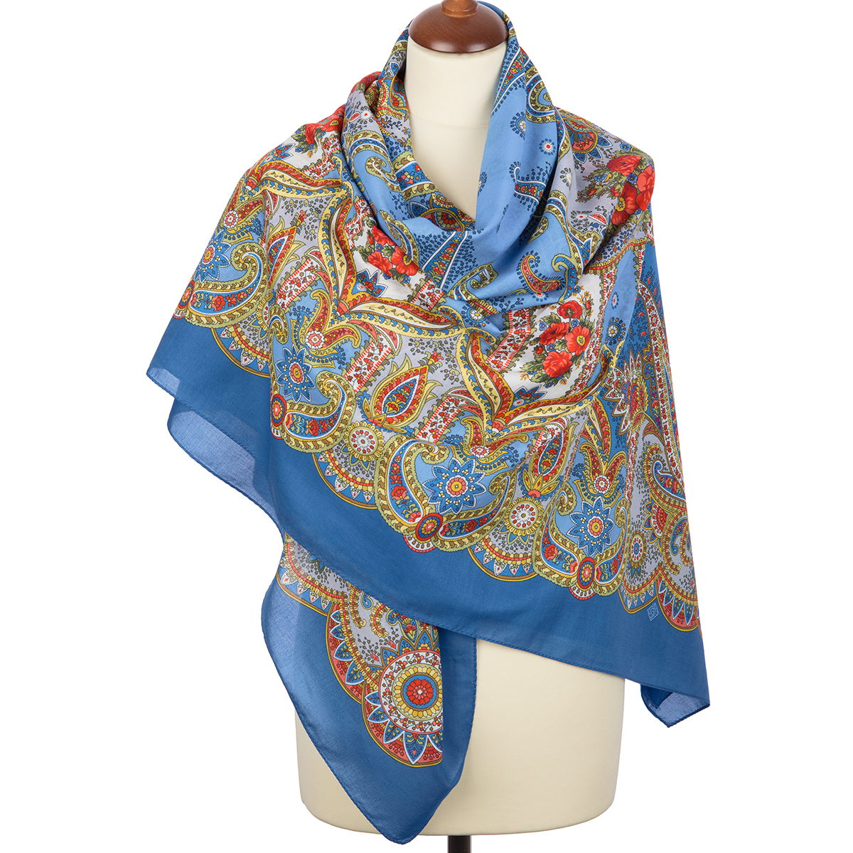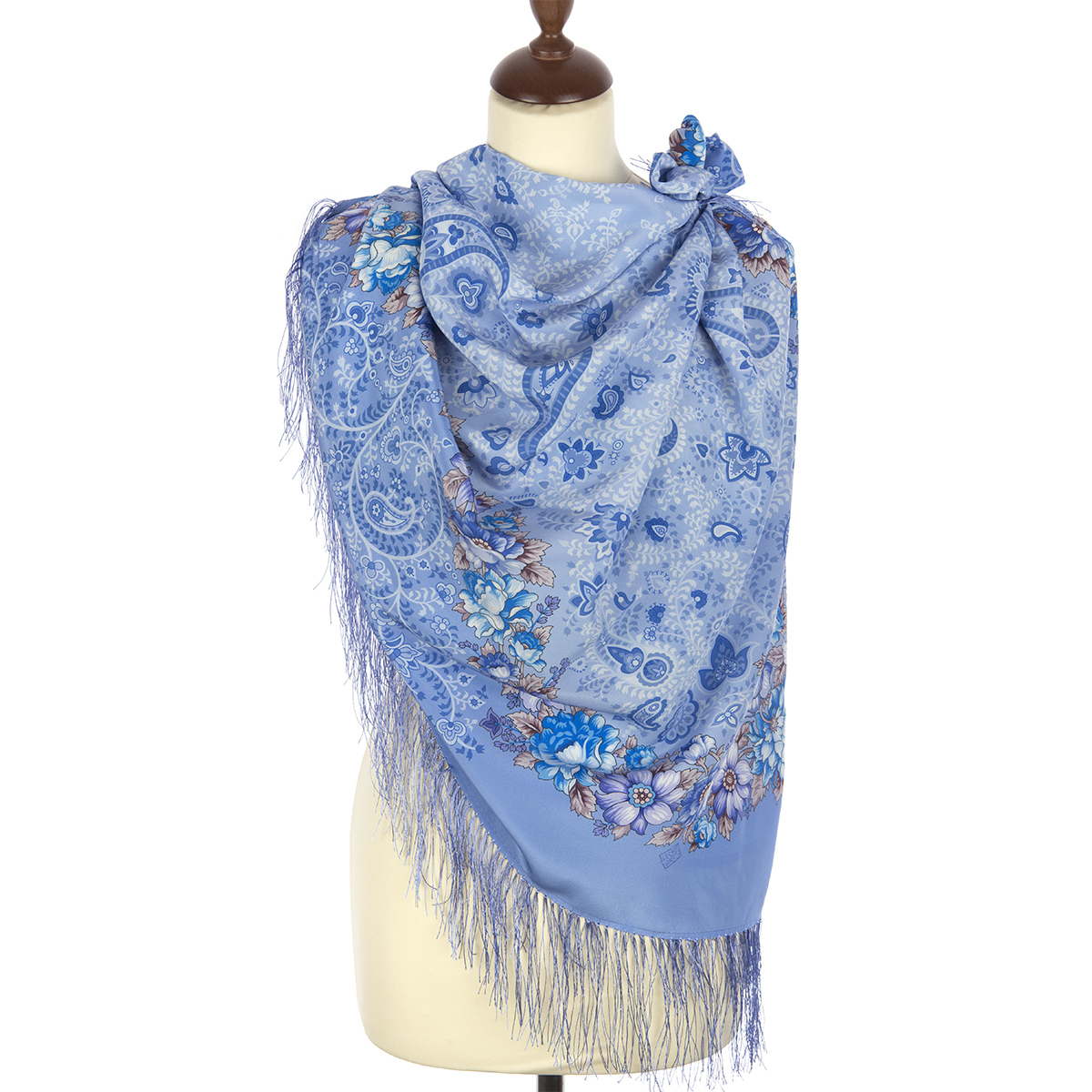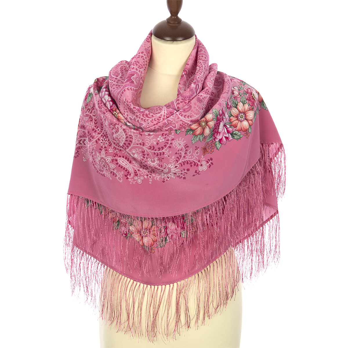 Шаль шёлковая (крепдешин, бахрома) 130х130
