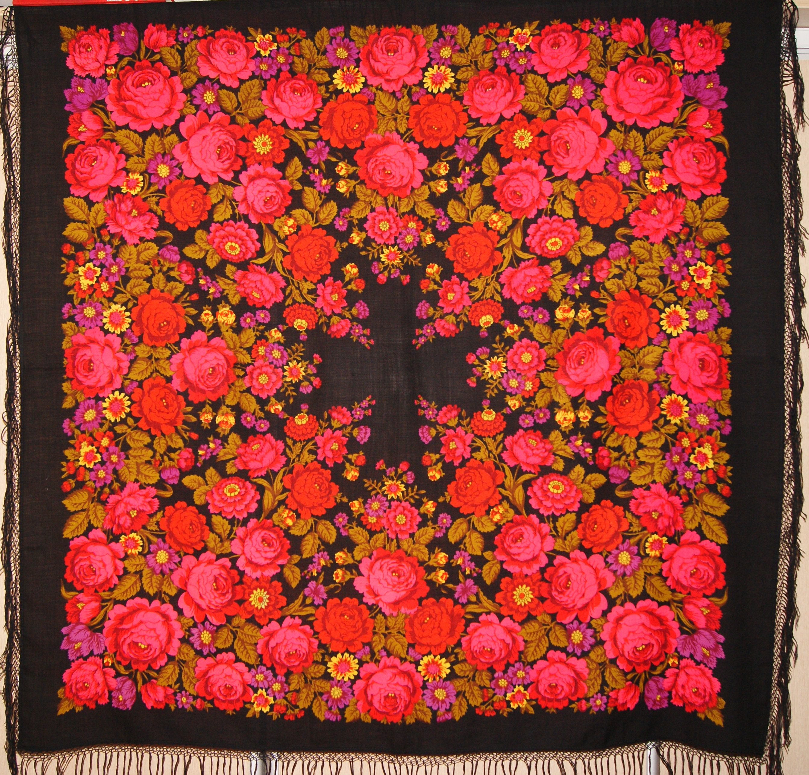 Шаль 150х150 с гирляндами по кругу в раме из роз - "агашек"