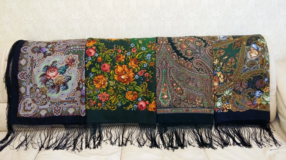 Смотрю со стороны; троица политкорректных , универсальных, элегантных шалей и только Рыжее лето со своей ярко-оранжевой "копной" цветов вносит в эту компанию частицу веселья, задора, разгульности...