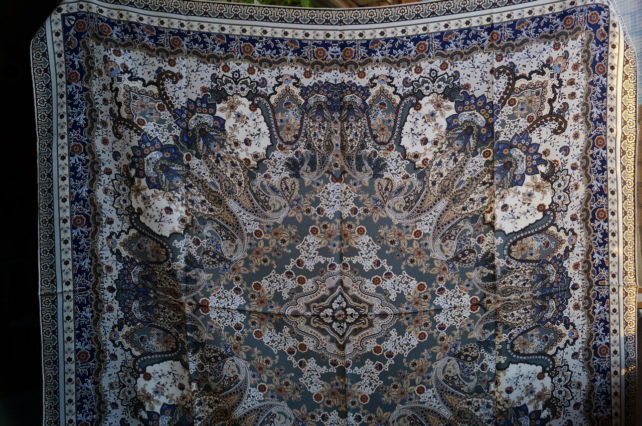 И ещё один платок той же фирмы. Рисунок в японском стиле (я так решила). Цвета умопомрачительные! И опять же, плотность и дивная шуршастость. Размер тот же 120*120.
