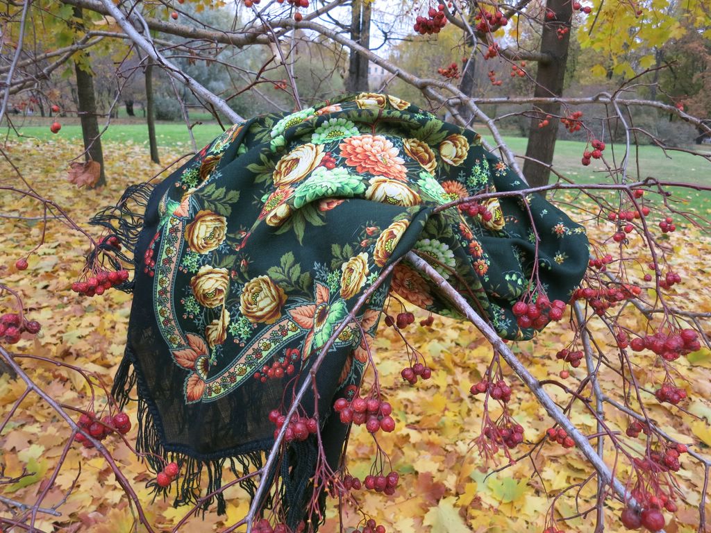 Вот такой платочек теперь есть в коллекции. С Блошиного рынка в Бауманском саду. Не нашла его в БС. Цвета реалистичнее на фото с манекеном.