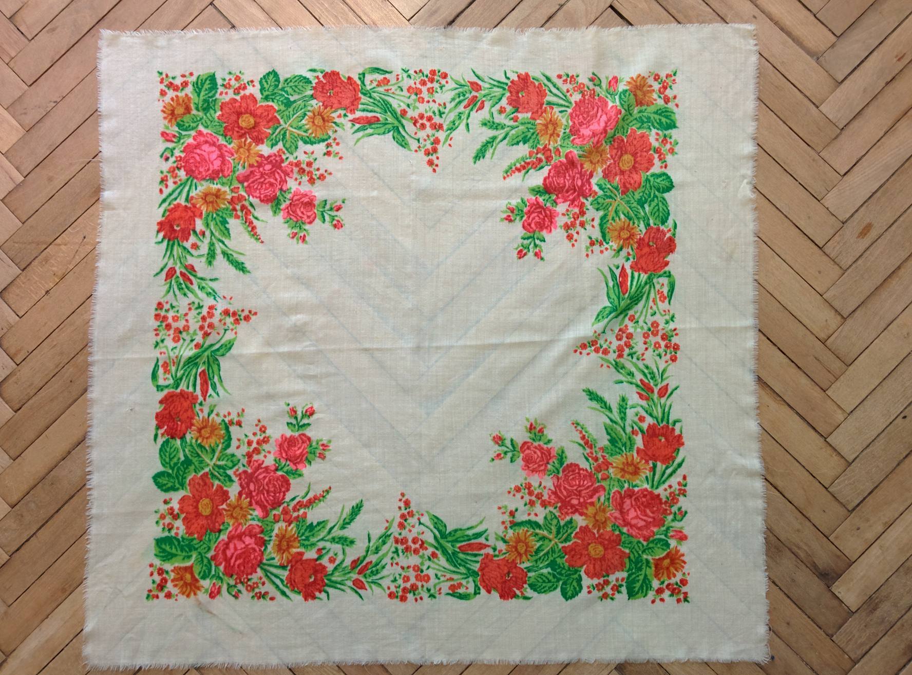 Вот такой платочек теперь есть в коллекции. С Блошиного рынка в Бауманском саду. Не нашла его в БС. Цвета реалистичнее на фото с манекеном.