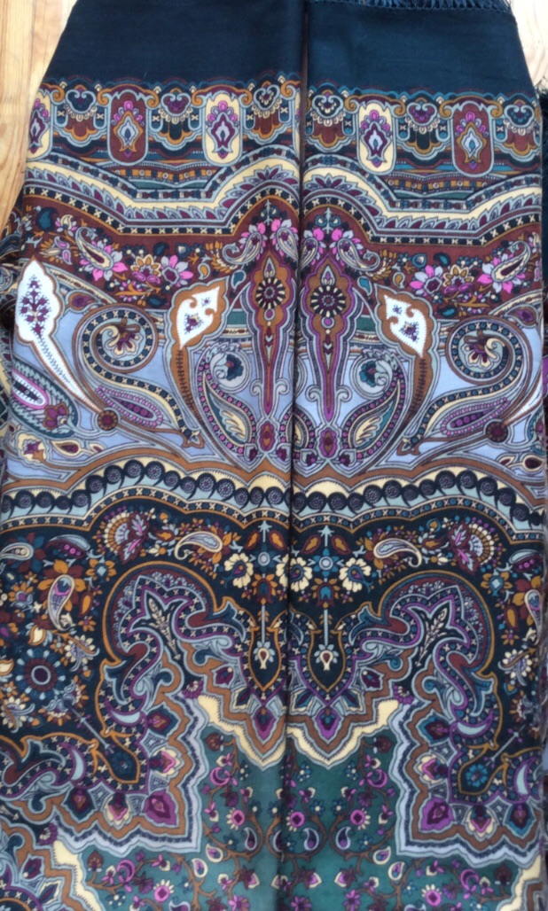 И серый цвет в левой шали кажется прозрачней. В целом впечатление такое, что цвета в одной шали теплее, в другой холоднее и контрастней. И ткань в левой шали плотнее и толще.(Кликните, чтобы почитать, что спрятано под катом)...