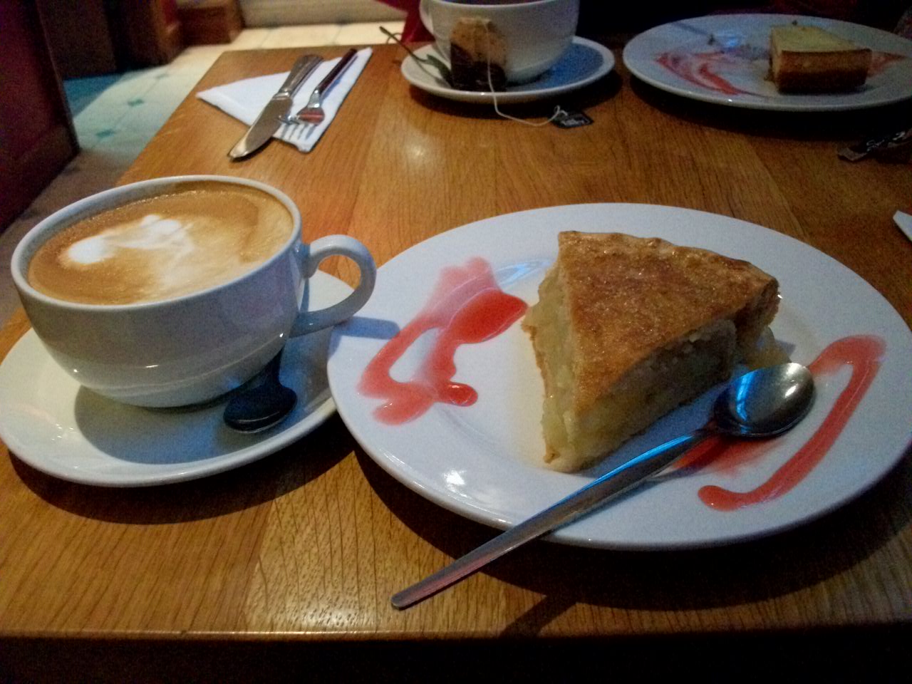 Яблочный пай в кафе был вкусный (даже с гвоздикой). А вот фиш энд чипс не очень.