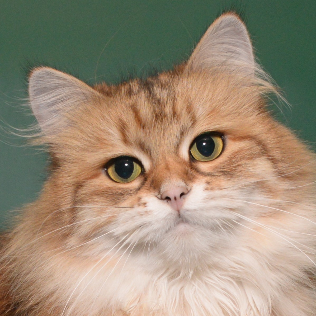 Очень серьезная и своенравная кошечка. Есть предположение, что она частично дикая кошка, которую нам получилось приручить. Других животных и людей не признает, Нушу терпит.