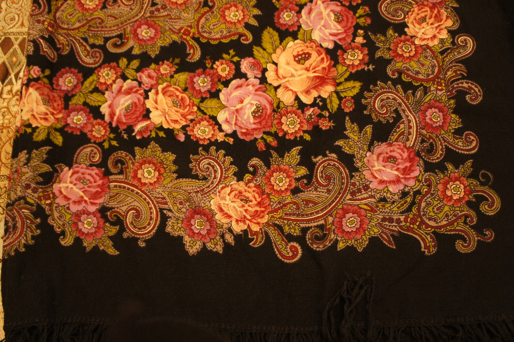 Видимо, экспозиция в Краеведческом музее в ПП и реквизит на этот спектакль организовывались в одно время. И это время было ярким... Какие шали!