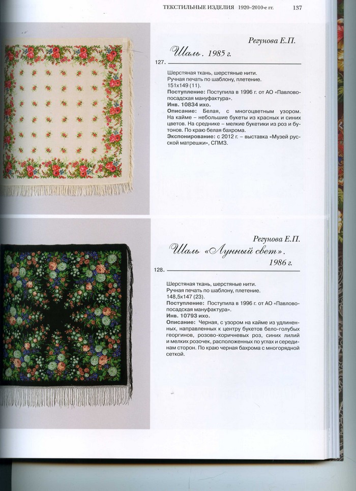 4. Платок, опознанный И.П. Дадоновой как платок Регуновой, в книге так же опубликован за авторством Е.П. Регуновой. Расхождений нет.