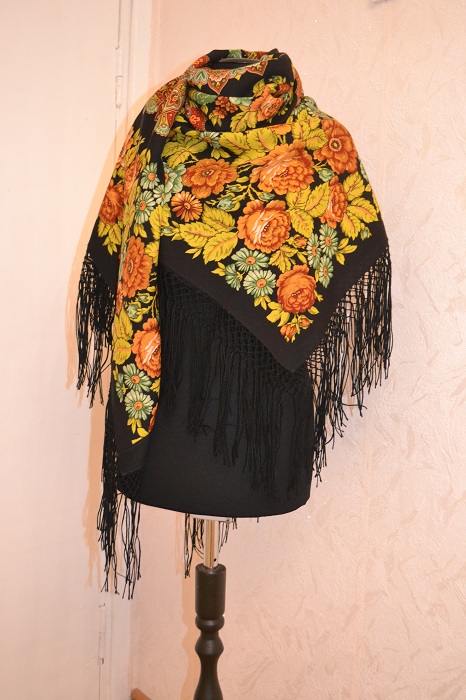 Платок "Откровение", необыкновенно преобразился с бахромой
