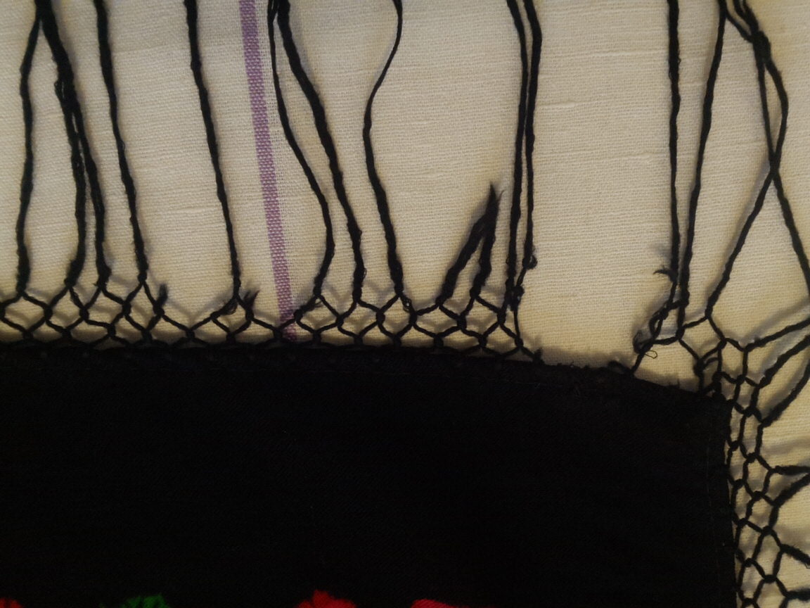 да, узелки развязать невозможно, бахрома в неповреждённых частях меня устраивает. Люблю такую пожившую шерстяную бахрому