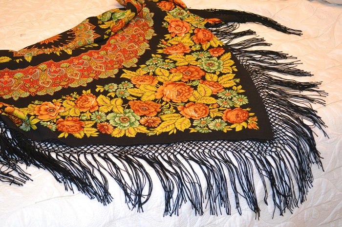 Платок "Откровение", необыкновенно преобразился с бахромой