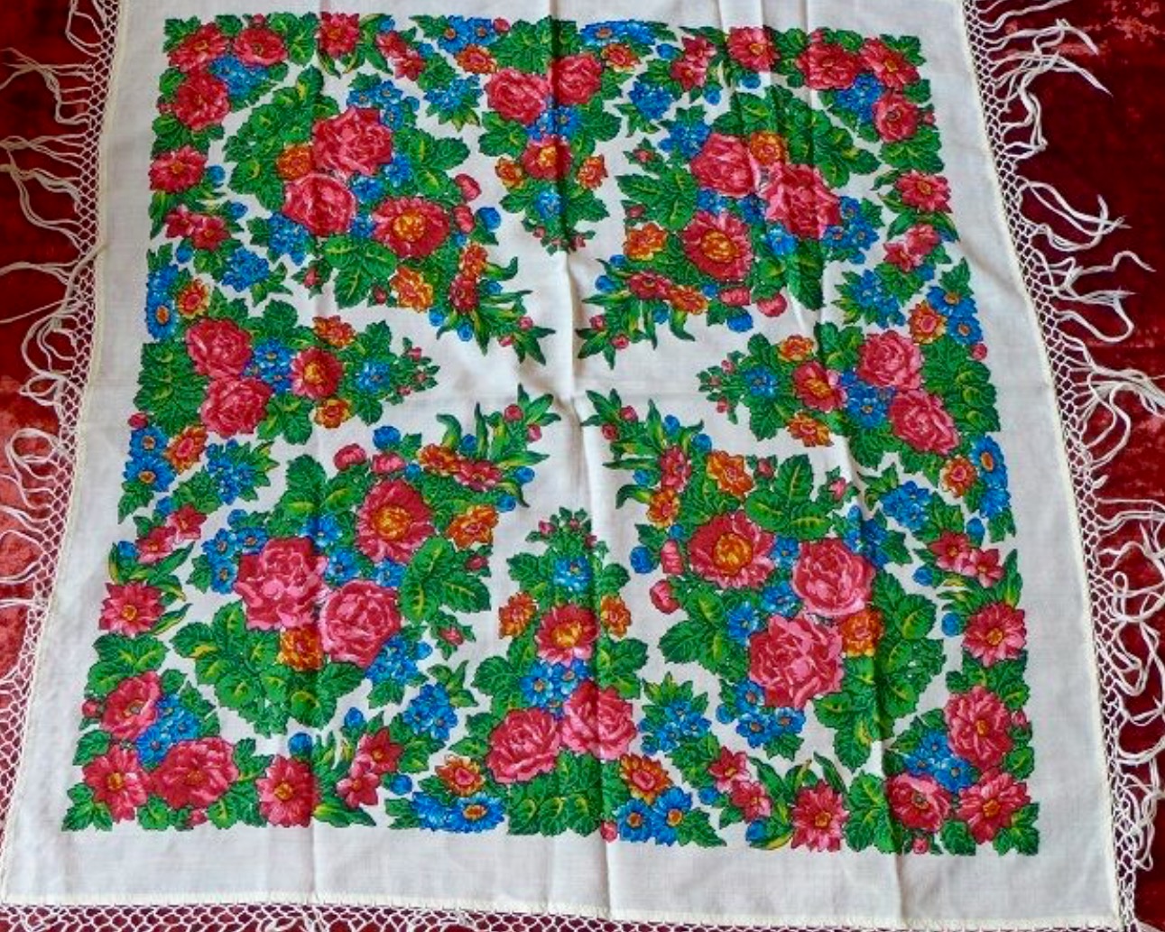 Size: 58.5" X 58.5" + fringe 148 cm X 148 cm