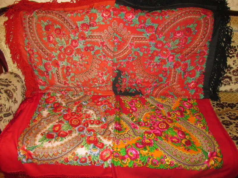 По просьбе Лены агента 007 и Милочки выкладываю сравнительные фото, четырех красных Подков. 2 шали новой печати, две очень старой. (Все шали Лены)