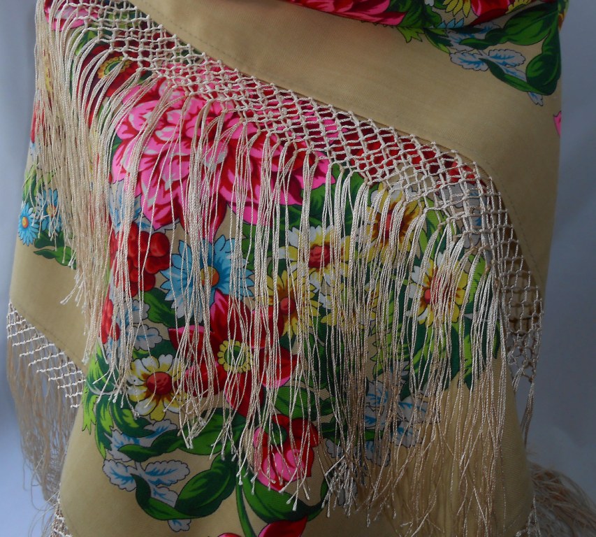 и непременно шерстяную бахрому. Красивущий колорит у шали!