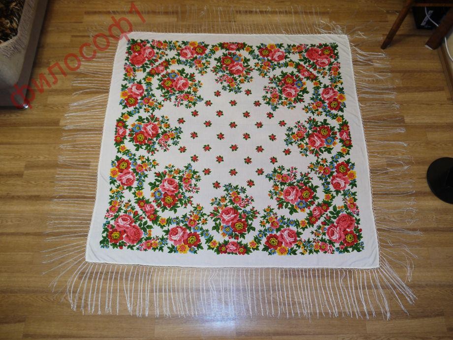 Добавлю два платочка 90х90 одного рисунка, напечатанного на смесовой ткани с вискозной бахромой: