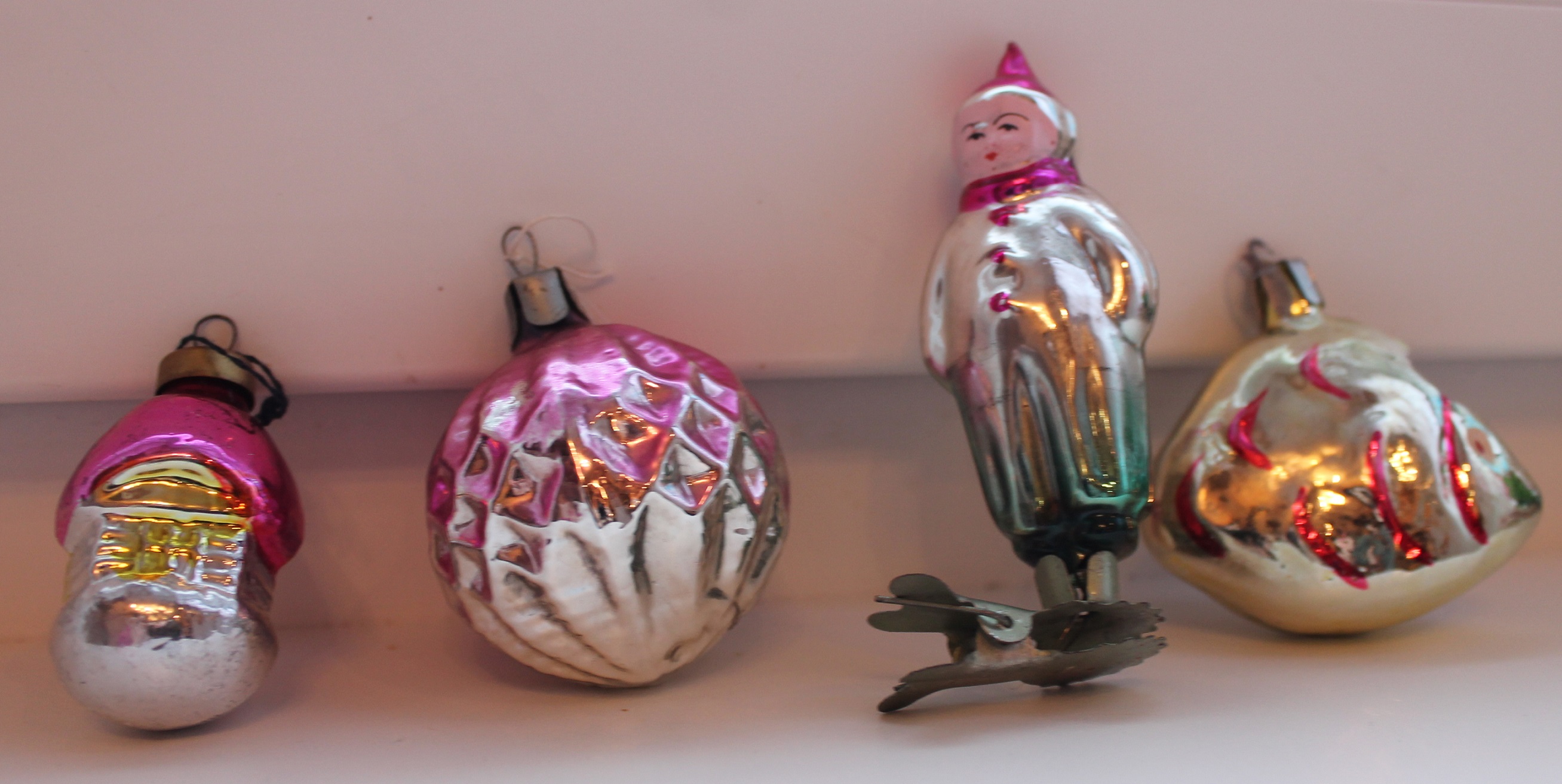 Можно я тоже кое-что поставлю? Редкостей у меня нет, есть просто старенькие игрушки, в основном мои ровесники. Путешествовали с нами, с нашей семьей в коробках, в контейнерах с Севера ни Юг, потом в центральную Россию, потом на Урал, теперь часть из них живет у меня, в Сургуте. К сожалению, живы не все, кое-что побилось, небольшая коробочка пропала при одном из переездов (тогда много чего недосчитались: несколько коробок с книгами, с вещами и вот с елочными игрушками коробочки).