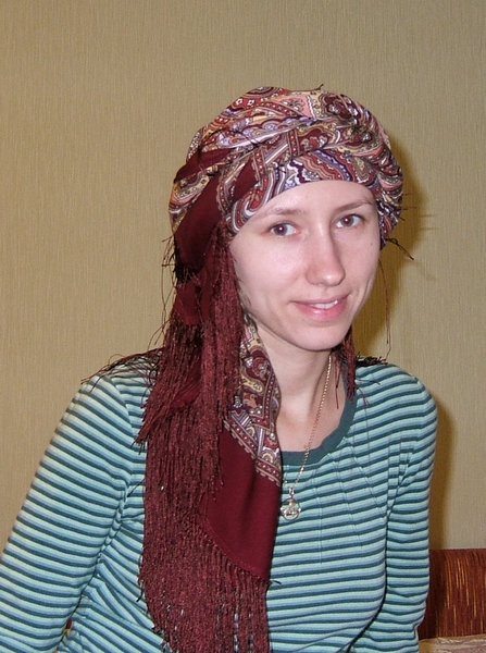 Вот мой "тюрбан" со старательно упрятанными бахромками (а они старались неубираться изо всех сил).