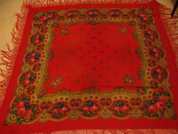 148 х 148 см. "шикарный старинный платок достался по наследству от прабабушки.новый( тех времен)"
