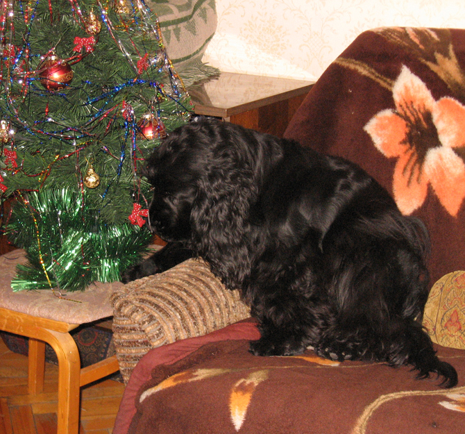 А вот сОбак вообще был равнодушен. Взирал на наши новогодние хлопоты взглядом умудренного старца, вздыхал и уходил в коридор. Запах елки ему не нравился. И жутко боялся взрывов фейерверков, каждый Новый год мы встречали так - в 12 часов быстро друг друга поздравили и бегом - я к ребенку в комнату (маленьким очень долго боялся взрывов), а муж в коридоре в обнимку с Джерькой, его утешал (тот аж дрожал от страха). Иногда мы с мужем менялись местами