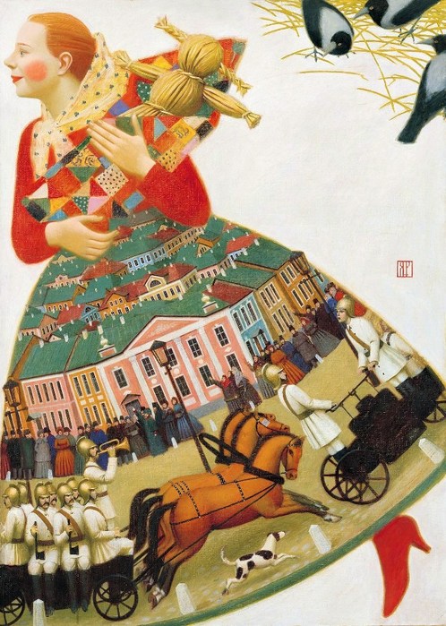 Однако, сколько художников “ищет связи между главными характерами и декоративными возможностями элементов одежды”. Красиво, глазу приятно, но какой контроль над разумом.. Отчего-то по контрасту вспомнился Малявин с его пастозными бабами и девками - вот где настоящий пожар и поэзия народного костюма