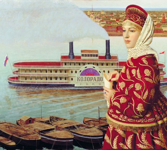 Однако, сколько художников “ищет связи между главными характерами и декоративными возможностями элементов одежды”. Красиво, глазу приятно, но какой контроль над разумом.. Отчего-то по контрасту вспомнился Малявин с его пастозными бабами и девками - вот где настоящий пожар и поэзия народного костюма