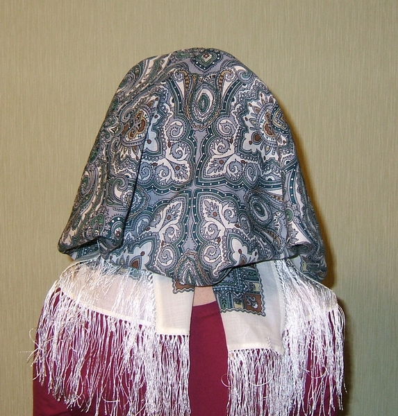 Демонстрируем ношение платков и шалей.