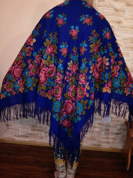 Вот такая шаль 145х152 см. Качество фото не очень хорошее.