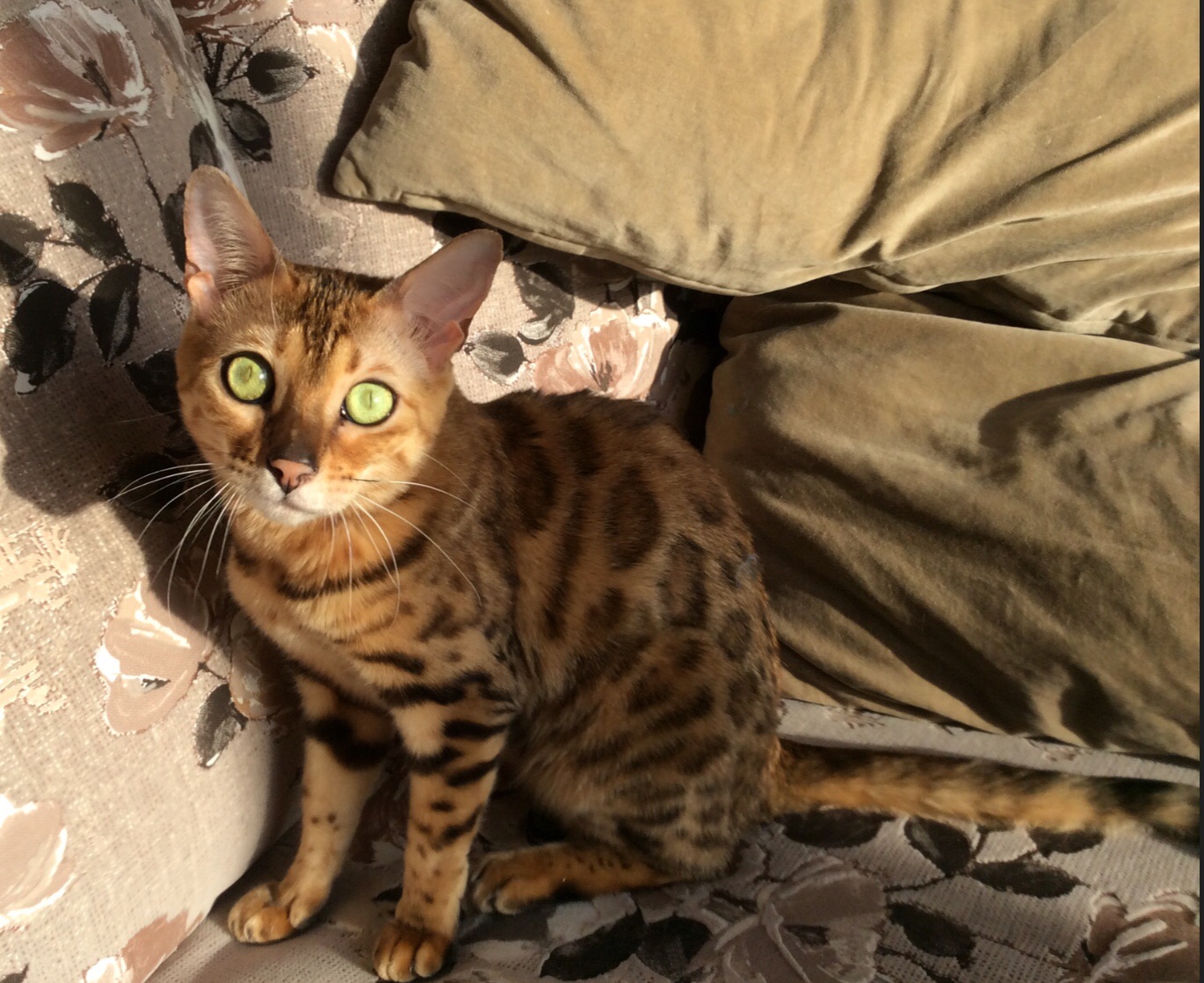 Tata, фазинг еще не прошел у котят, но окрас уже хорошо виден. Оба хороши! Но даже на ощупь шерстка у девочки и мальчика разная. У девочки шелковистей. У обоих крупные закрытые розетки. У девочки более яркая бабочка на лопатках. И сдвоенная розетка с одной стороны. Хорошо это или плохо, не знаю, но индивидуальность налицо. У мальчика все сбалансировано, его выбрали для разведения. Котятки неугомонные, скачут за мной , как хвостики, утром поднимаются в спальню на второй этаж будить хозяйку. Вообще, стараются быть рядом с нами постоянно. Настойчивые в своих желаниях, очень любопытные, чем-то похожие на щенков. Забавные, нам с ними весело!